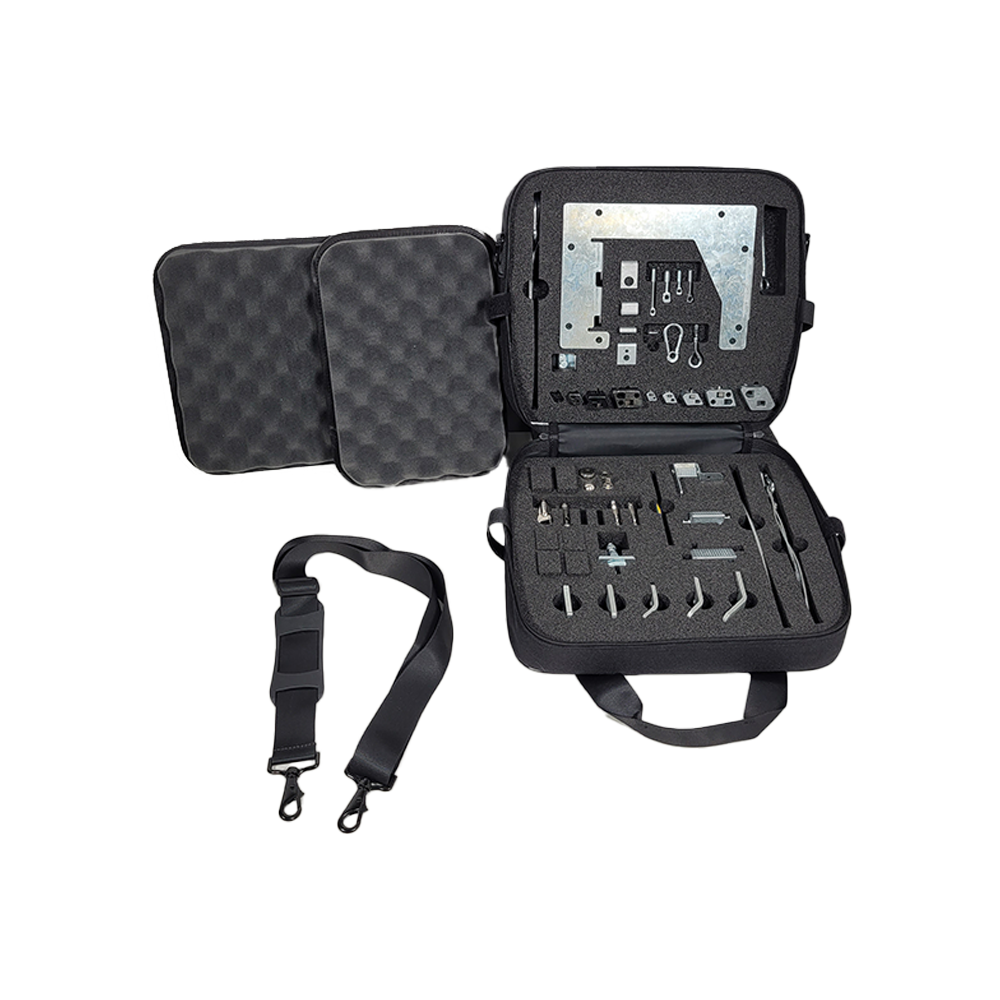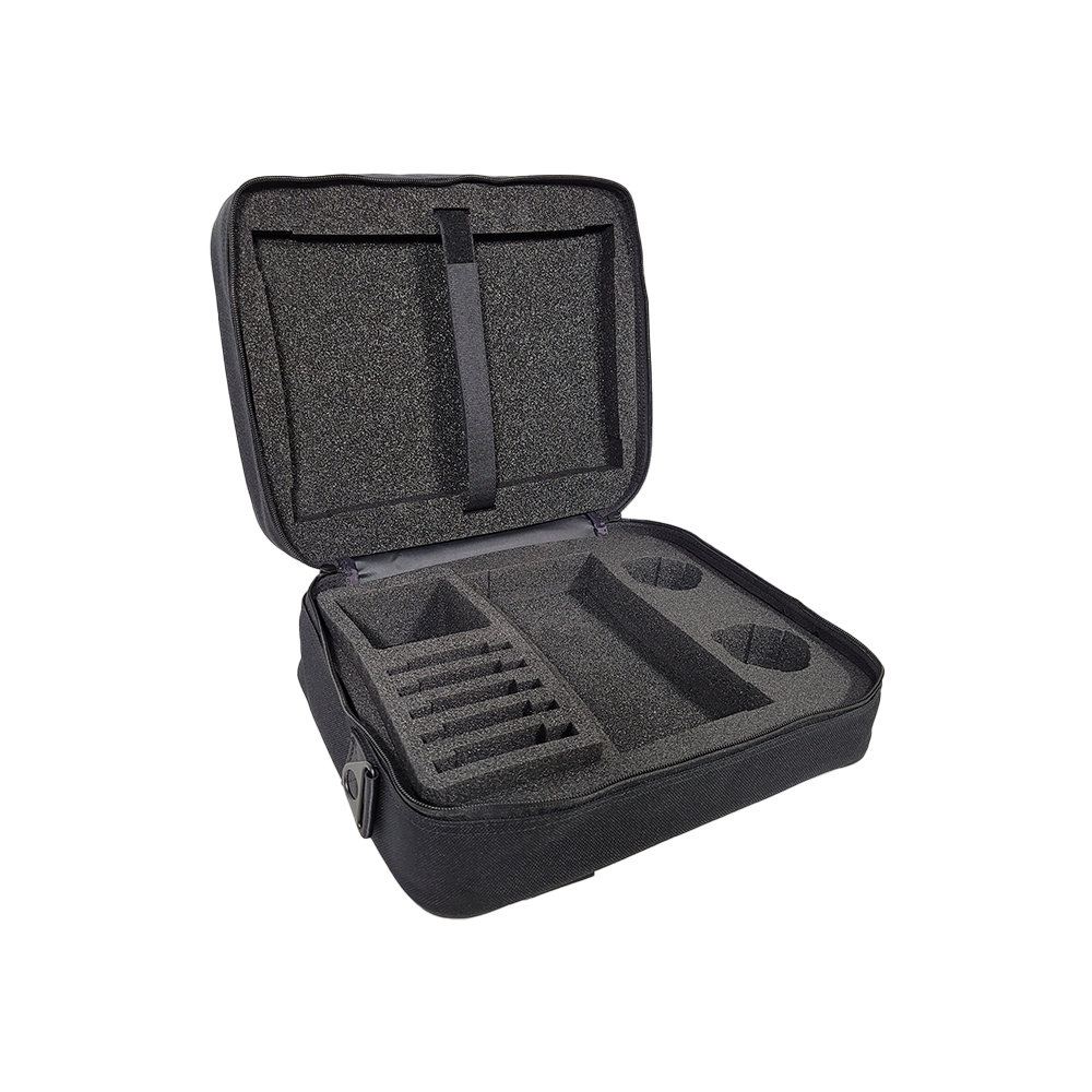 Découvrez le Kit Mini de dimensions 340 x 285 x 120 mm, il est garni de 2 mousses haute densité découpées sur-mesure, pour assurer une protection optimale de vos petits échantillons. Idéal pour mettre en valeur votre savoir-faire, il présente un design sobre et esthétique en noir. Le Kit est personnalisable avec le marquage de votre logo.