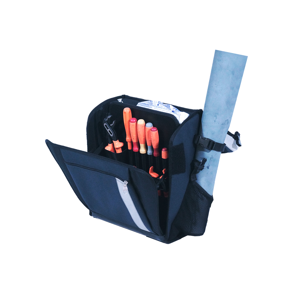 La simplicité qui fait gagner du temps. Pas besoin d’artifices quand on veut juste un accès pratique et fiable à son matériel : le Sac à dos Technicien Bag PRO – version VELCRO mise sur l’efficacité. Son système d’ouverture en deux temps :